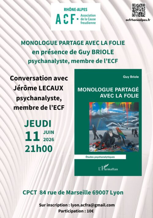 L’ACF en Rhône-Alpes vous propose une conversation avec Guy Briole, psychanalyste, membre de l’ECF autour de son ouvrage « monologue partagé avec la folie ».