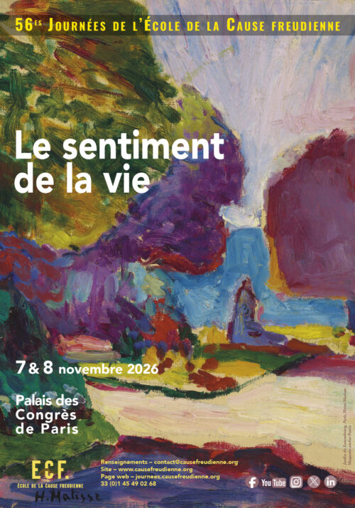 Les 56e Journées de l’École de la Cause freudienne se dérouleront les 7 et 8 novembre 2026 au Palais des congrès de Paris sous le titre « Le sentiment de la vie »