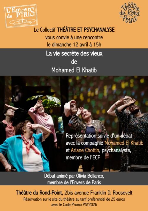 Le vecteur théâtre de l’Envers de Paris vous invite à découvrir la pièce « La vie secrète des vieux » de Mohamed El Khatib le 12 avril prochain au théâtre du Rond-point. Une discussion entre notre invitée Ariane Chottin et la compagnie Mohamed El Khatib, suivra la représentation.