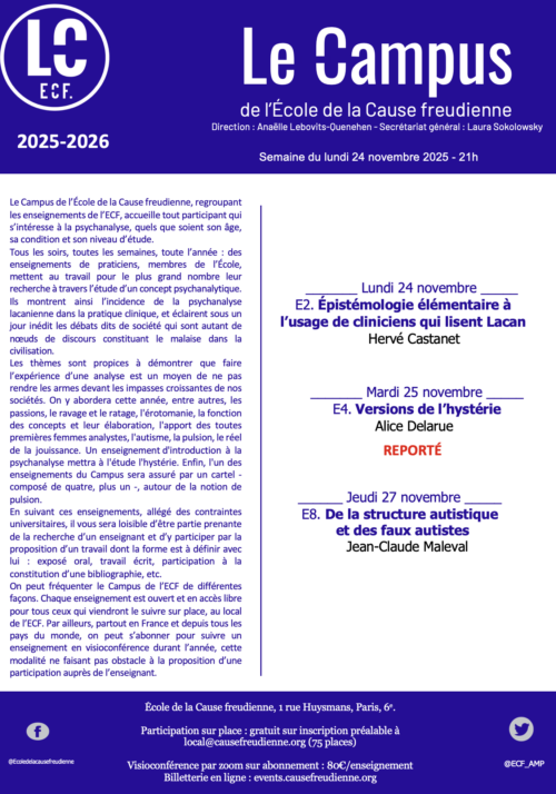 Jeudi 27 novembre – E8 – De la structure autistique et des faux autistes, Par Jean-Claude Maleval