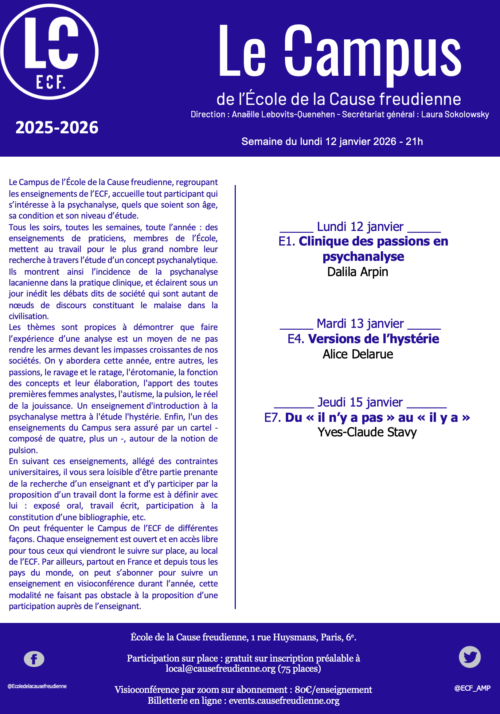 Lundi 12 janvier – E1 – Clinique des passions en psychanalyse, par Dalila Arpin
