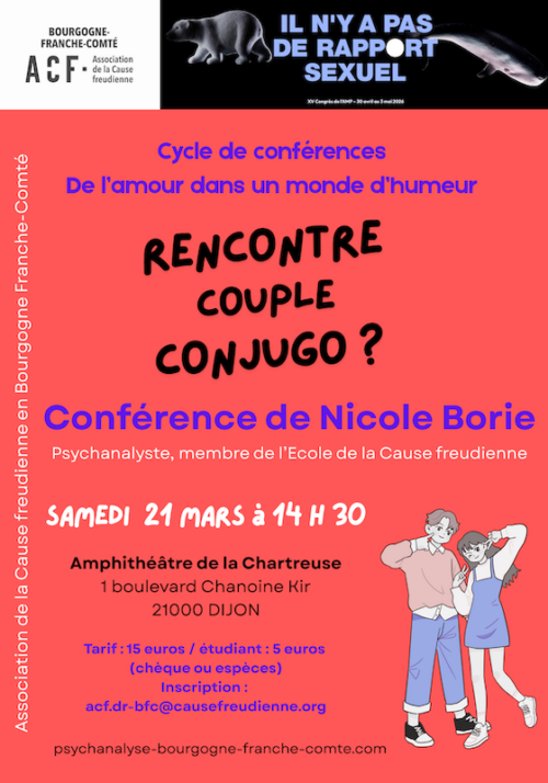 Dans le cadre du cycle de conférences « De l’amour dans un monde d’humeur » animé par Didier Mathey, psychanalyste membre de l’École de la Cause freudienne.